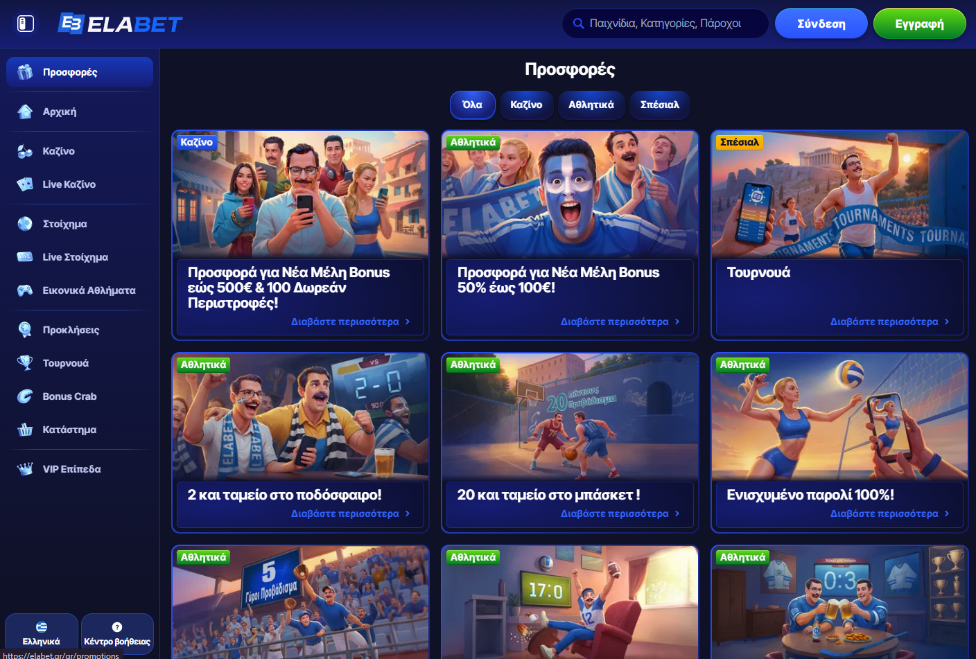 Η Elabet προωθείται ως «νέα, φρέσκια» επιλογή στην ελληνική αγορά, ειδικά “κατασκευασμένη” για Έλληνες παίκτες — με ελληνική γλώσσα, μεθόδους πληρωμής που βολεύουν στην Ελλάδα, υποστήριξη πελατών στα ελληνικά.