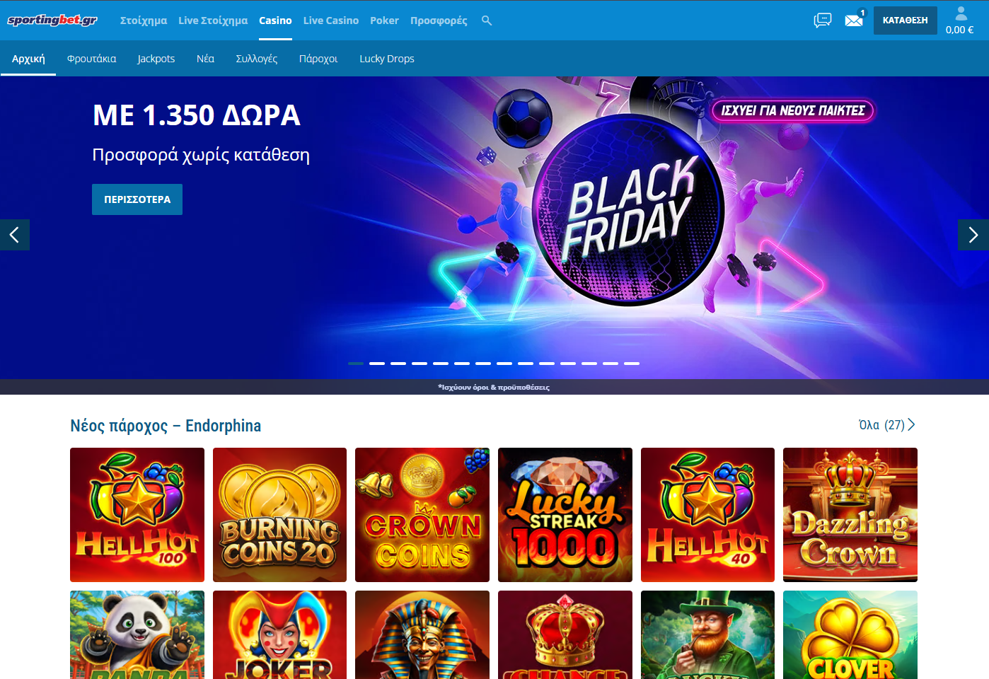 • Διαδικτυακό Καζίνο (Online Casino) — φρουτάκια (slots), ρουλέτα, μπλακτζάκ, επιτραπέζια παιχνίδια.