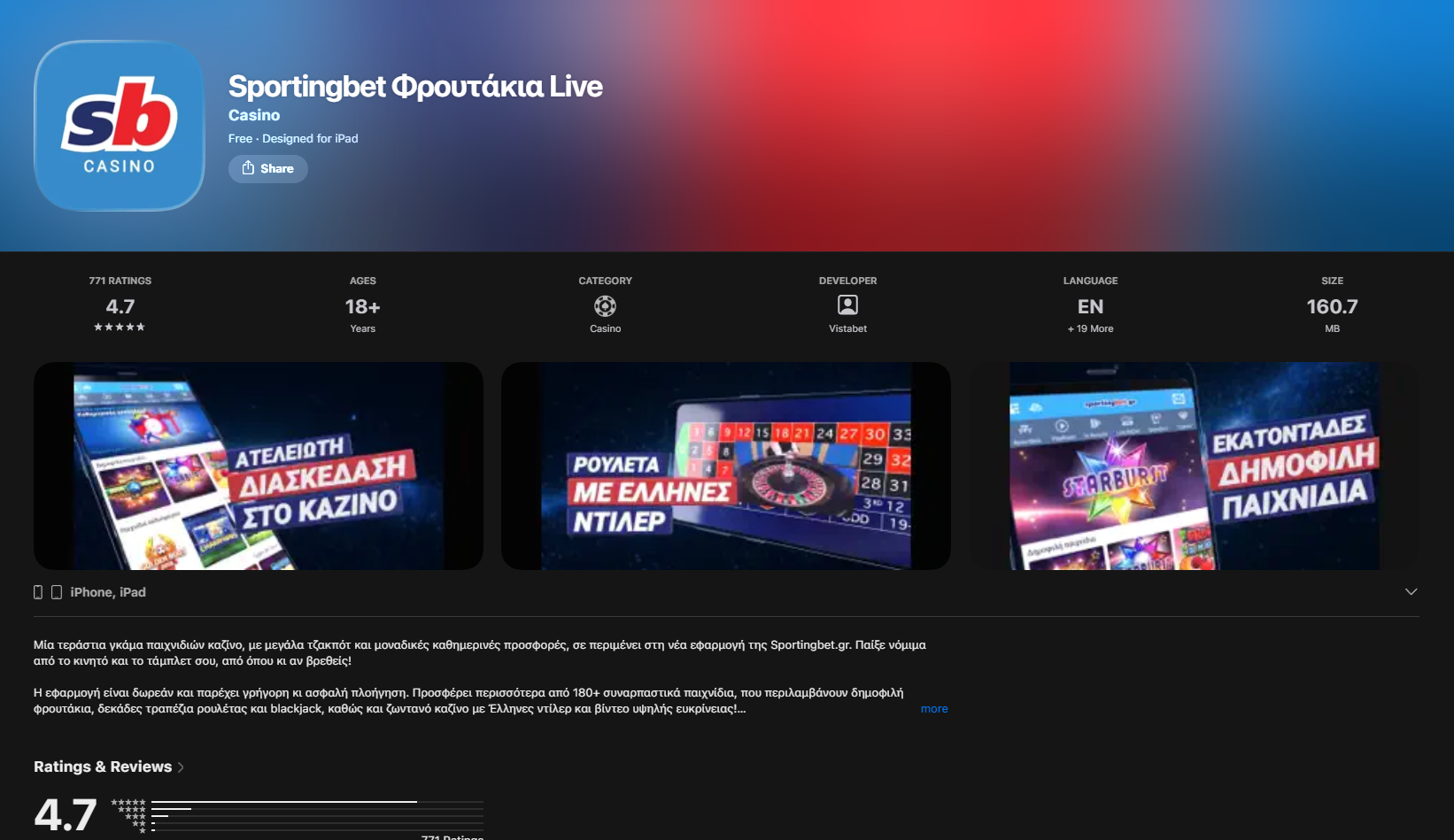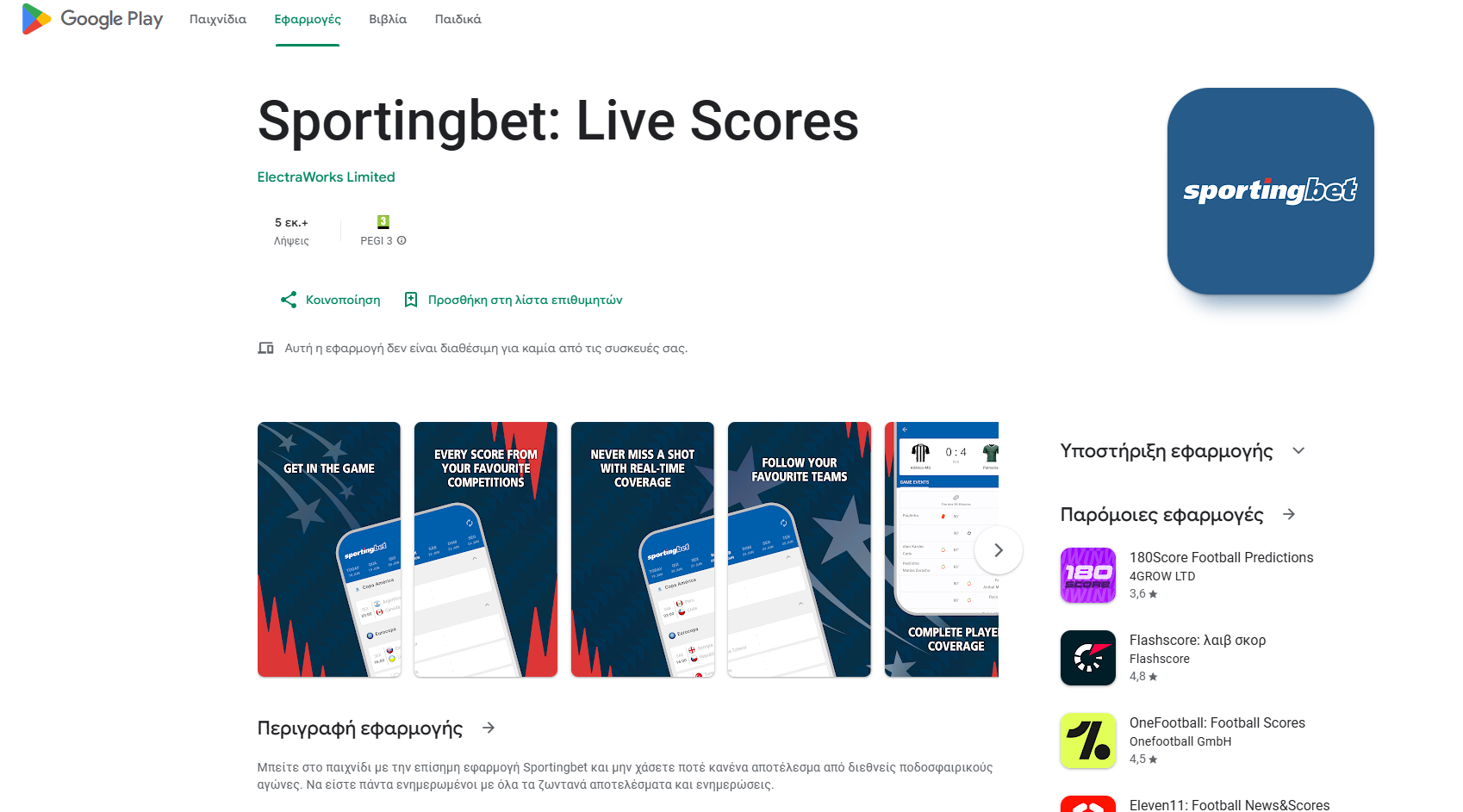 Η πλατφόρμα είναι διαθέσιμη ως ελληνική έκδοση (sportingbet.gr), με δυνατότητα χρήσης σε desktop και mobile.
