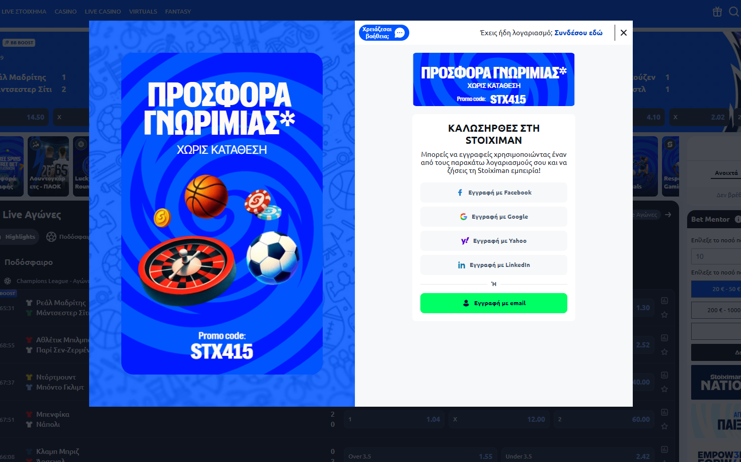 Η Stoiximan λειτουργεί νόμιμα στην Ελλάδα υπό άδεια από την Επιτροπή Εποπτείας και Ελέγχου Παιγνίων (ΕΕΕΠ).
