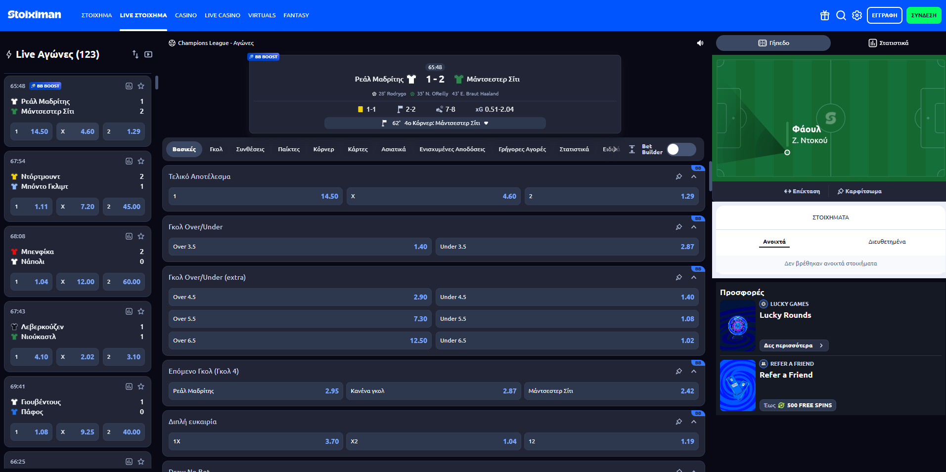 Ζωντανό στοίχημα (“in-play”) κατά τη διάρκεια των αγώνων.