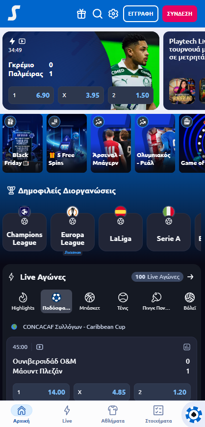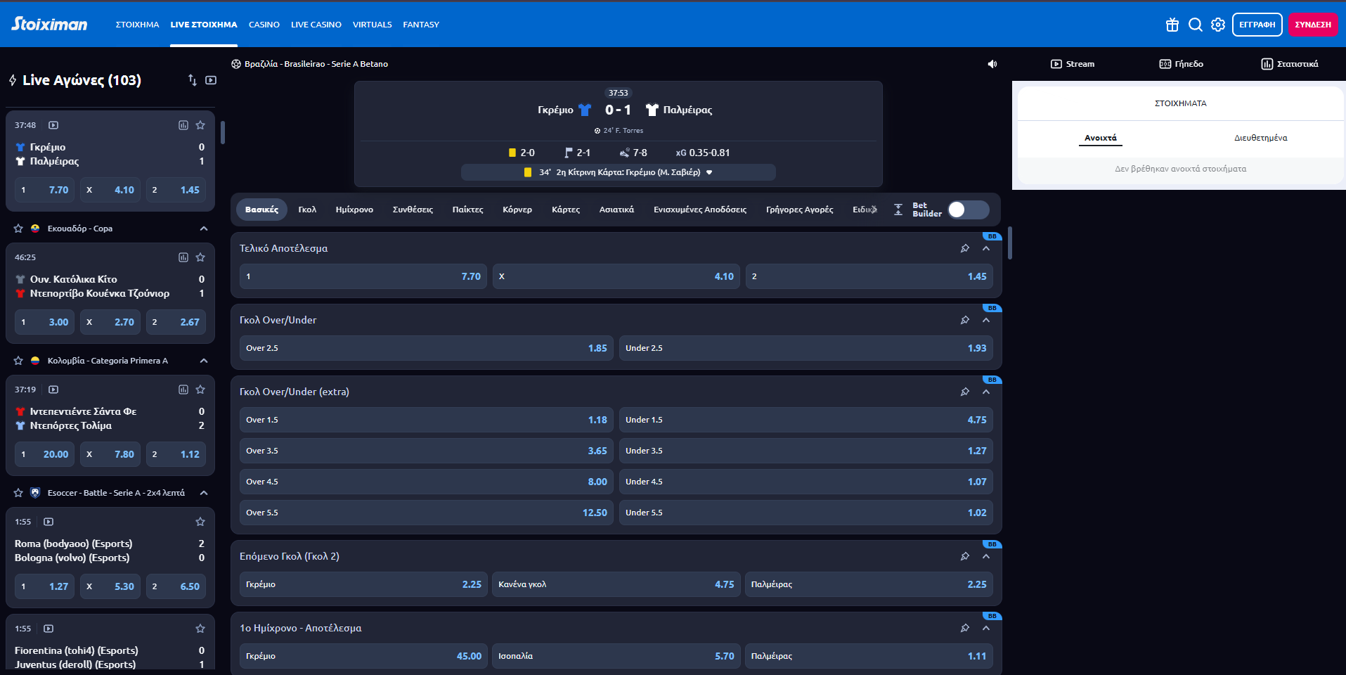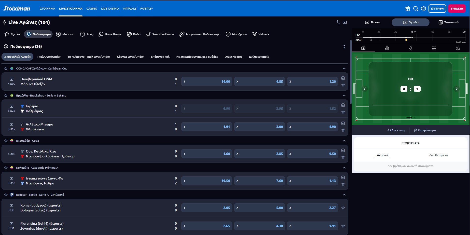 • Ζωντανό στοίχημα (“in-play”) κατά τη διάρκεια των αγώνων.
