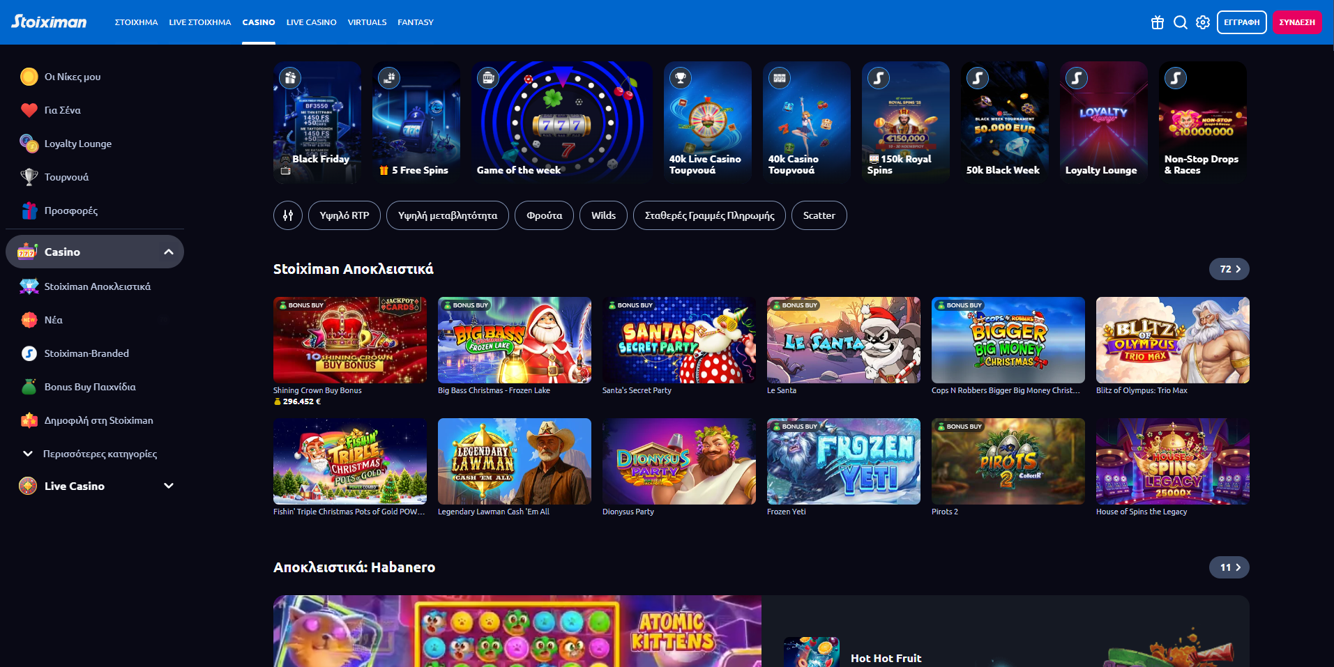 • Μεγάλη γκάμα παιχνιδιών καζίνο όπως φρουτάκια (slots), ρουλέτα, blackjack, βίντεο πόκερ κ.α.