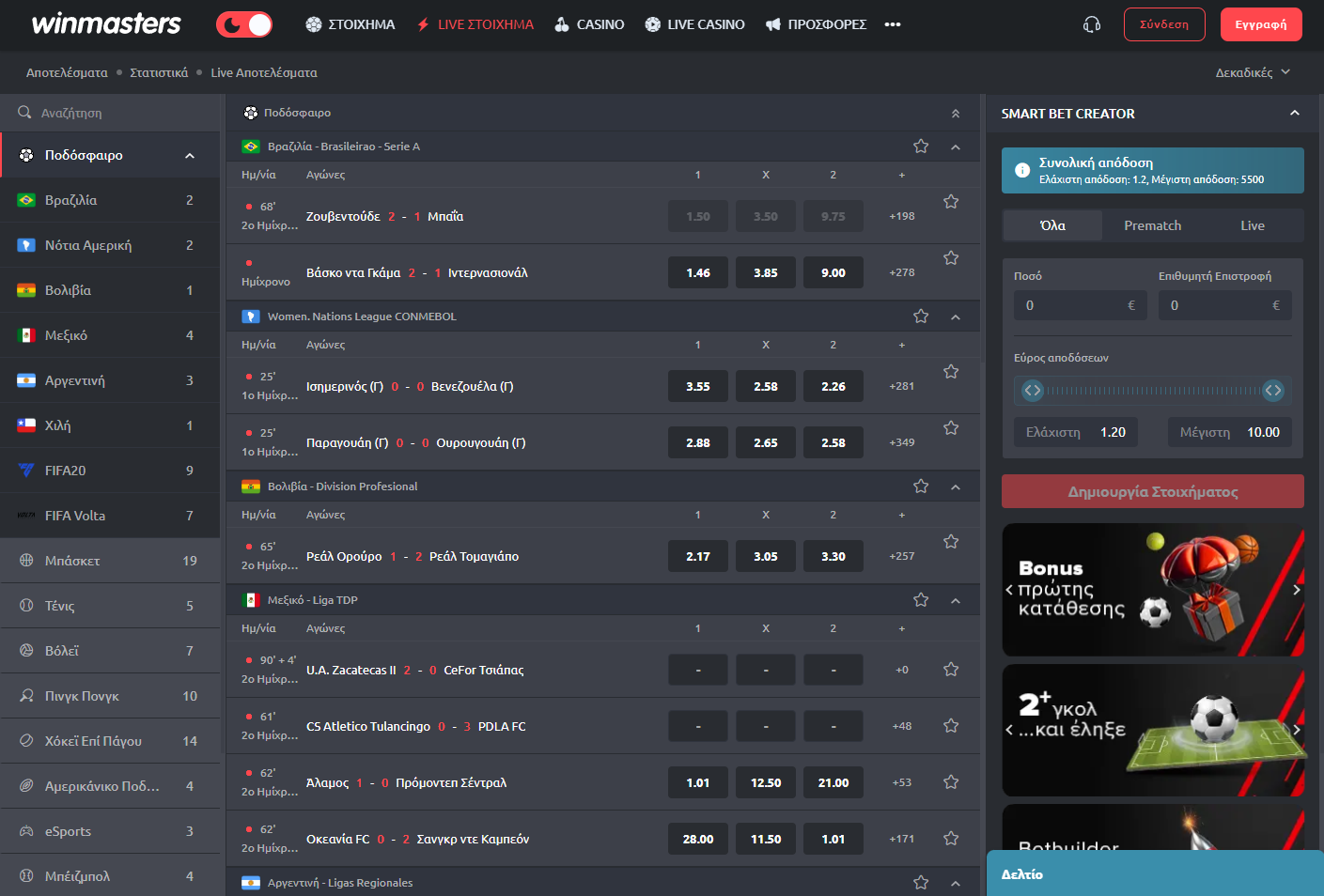 Live betting & ειδικά στοιχήματα — προσφέρει πολλές αγορές, ειδικά στοιχήματα, ασιατικά χάντικαπ, εναλλακτικές αγορές.