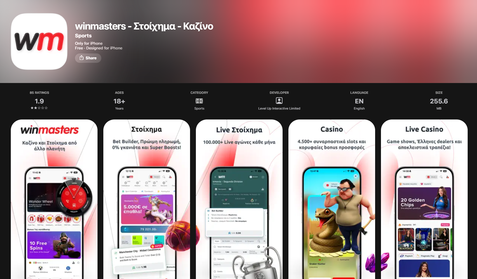 Η εταιρεία πίσω από τη Winmasters είναι η Level Up Interactive Limited, με έδρα στη Μάλτα (Birkirkara).